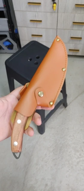 Professionelles handgeschmiedetes Küchenmesser inkl. Lederscheide – Edelstahlklinge mit ergonomischem Holzgriff